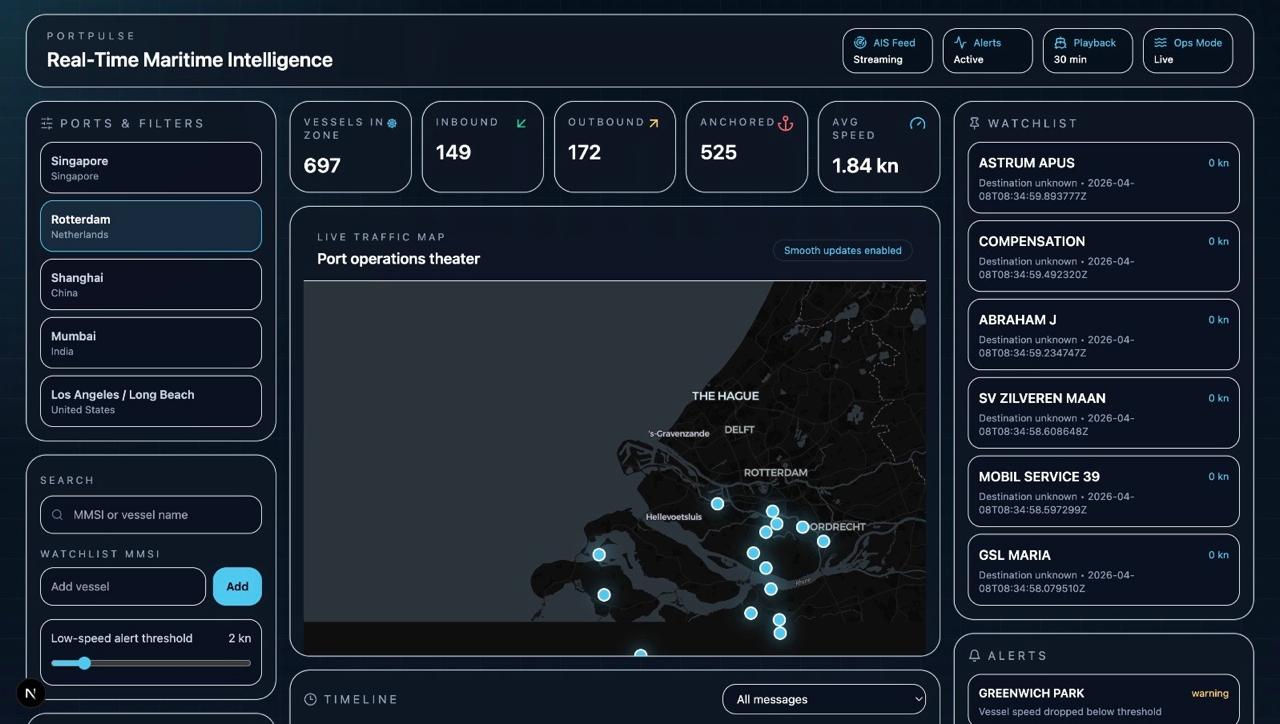 A live maritime monitoring dashboard that tracks vessel movement across global routes, supporting visibility for logistics, shipment awareness, and operational tracking requirements.